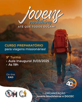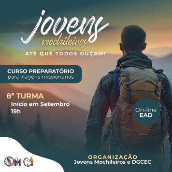 Para ingressar no movimento Jovens Mochileiros, o interessado deverá participar do nosso curso preparatório teórico JM. O Curso Teórico tem o objetivo de preparar os jovens e adolescentes para as viagens missionárias.